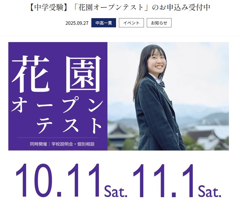 特に、花園中「オープンテスト」は、西京中・洛北中と同じく、国語分野、算数分野、理科・社会分野と、各100点・合計300点満点のテストのため、本番の練習には最適です。