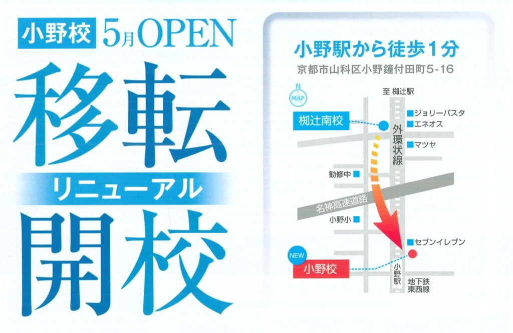 2026年5月、椥辻南校は「小野校」として移転開校します。